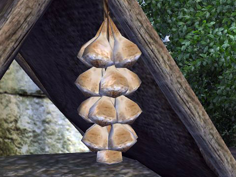 自生はしていない。いくつかの場所で吊されており、これは取っても盗み扱いにならない(自生している野菜扱い?)。ただし、単体では盗み扱いになる(例:ウェノイン修道院にあるジョフリーの机の上のニンニクはBladesに所属していなければ盗み扱い)。